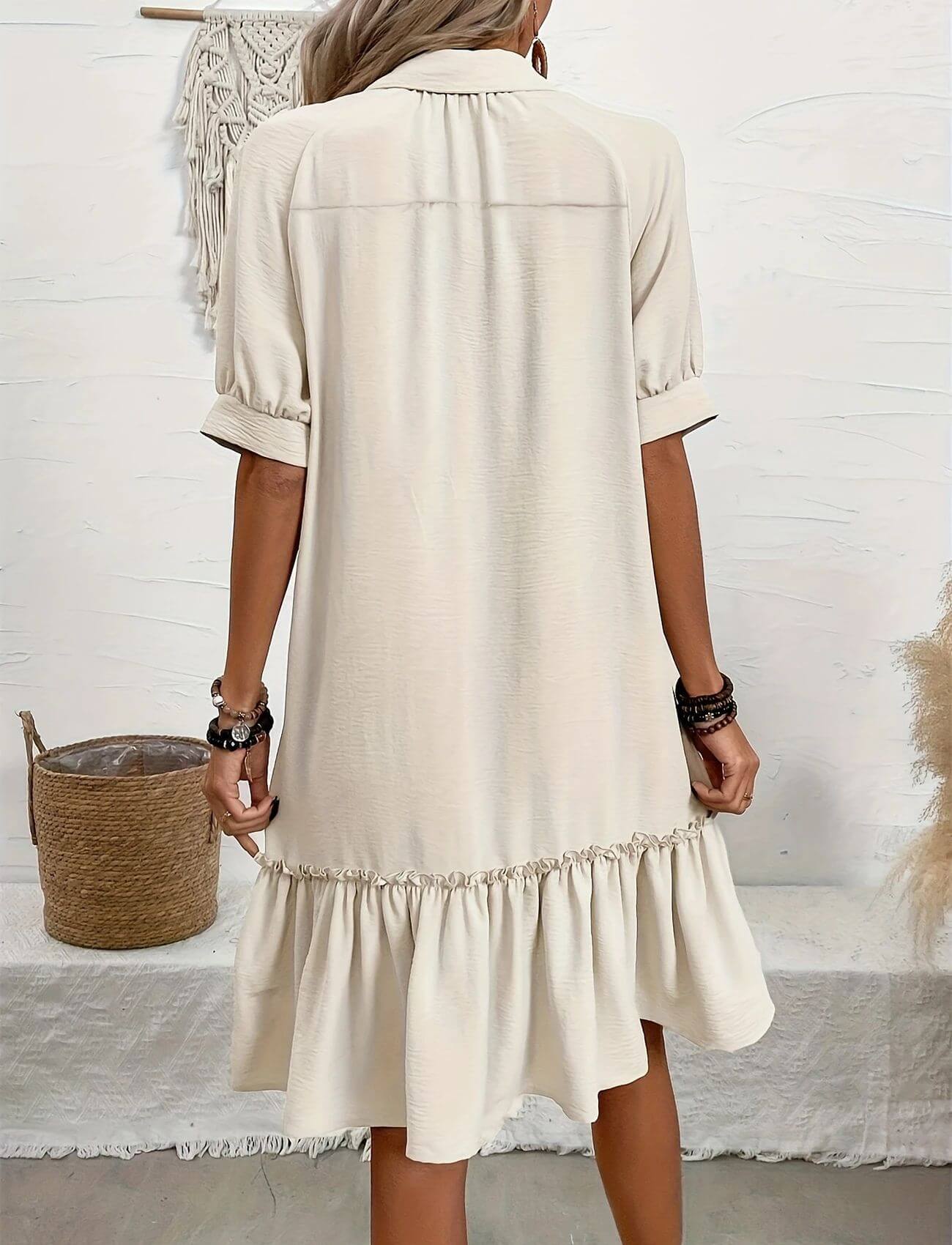 Ingrid™ – Komfortabel Kjole med Knapper og Volangkant