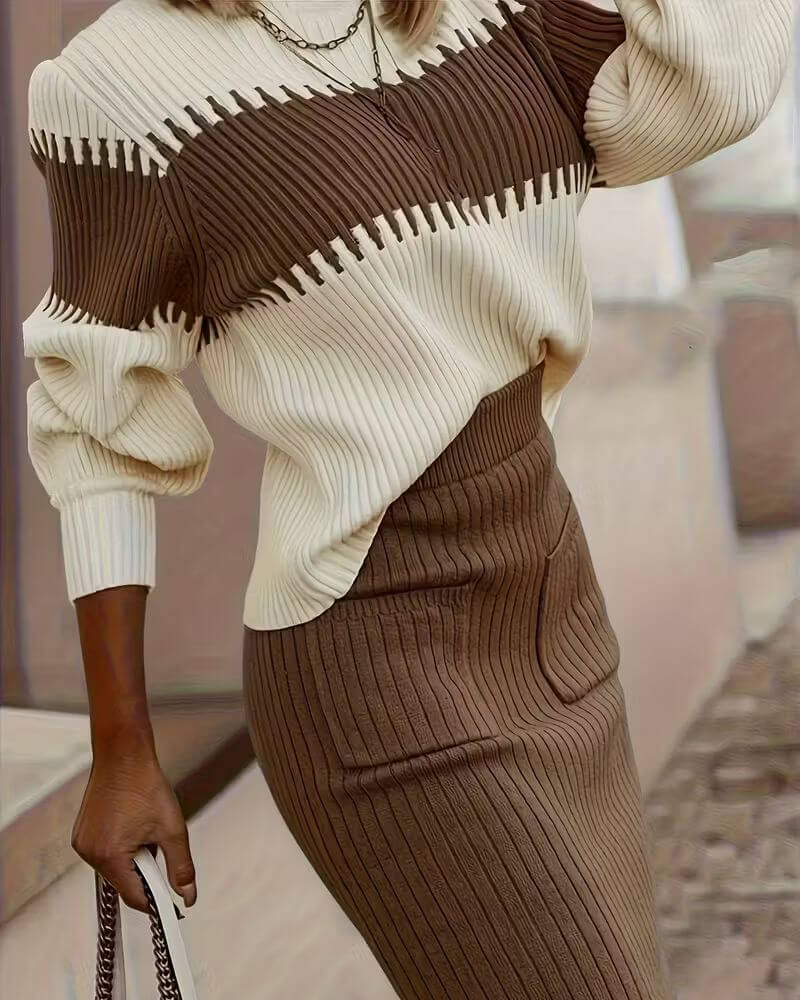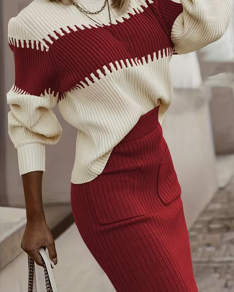 Embla™ - Stilig Langermet Topp og Skjørt 2-delt Sett